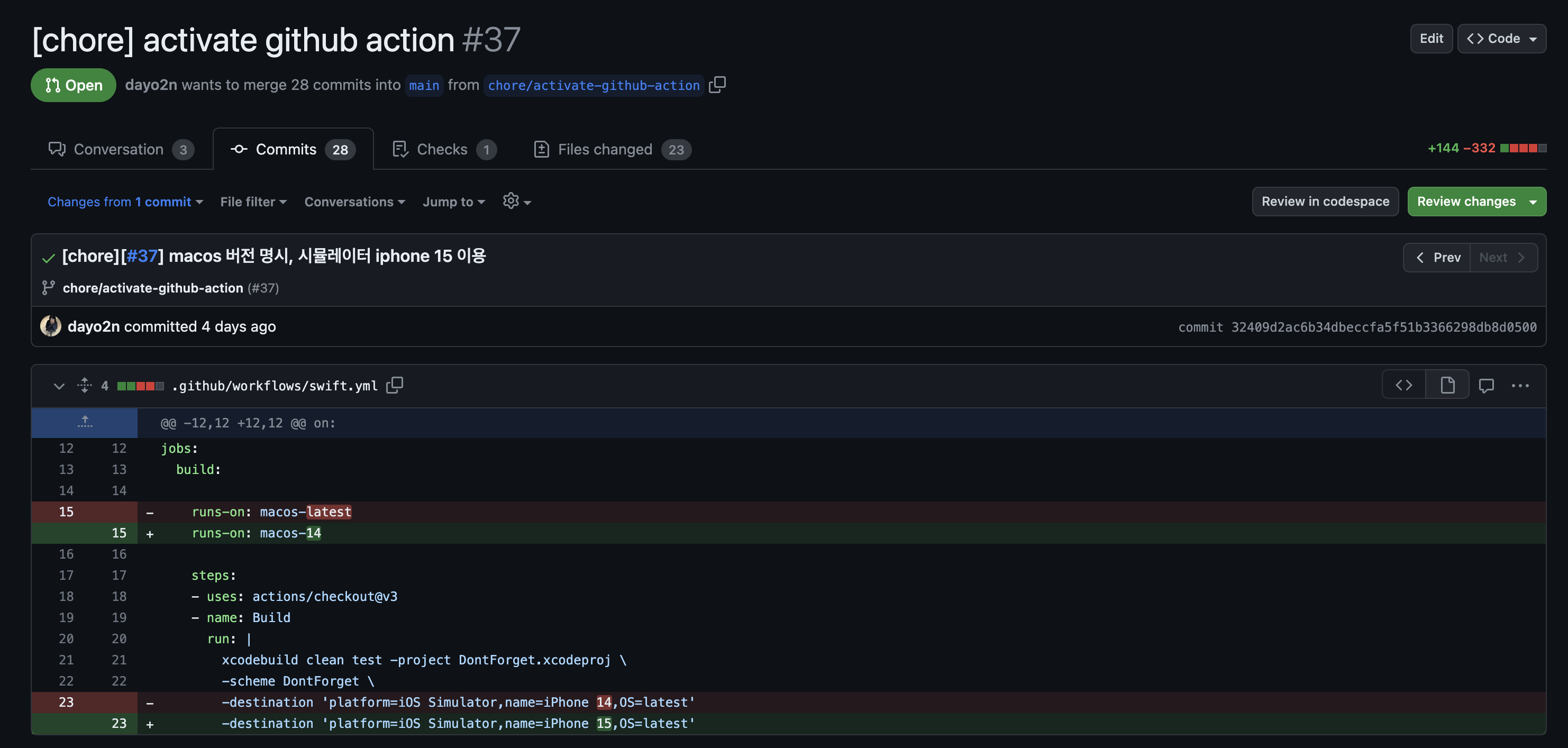[chore] activate github action by dayo2n · Pull Request #37 · Nexters/Don-t-Forget---iOS