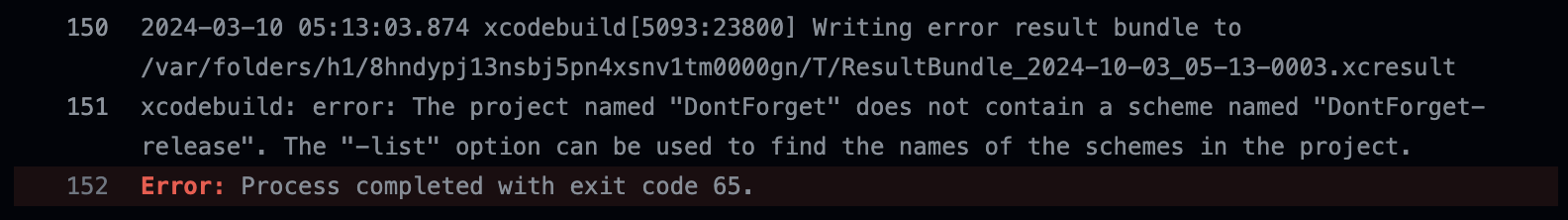 릴리즈 스킴을 쓰려고 DontForget-Release로 설정했는데 확인이 안됐다. 기본 스킴인 DontForget으로 수정해서 해결했다.