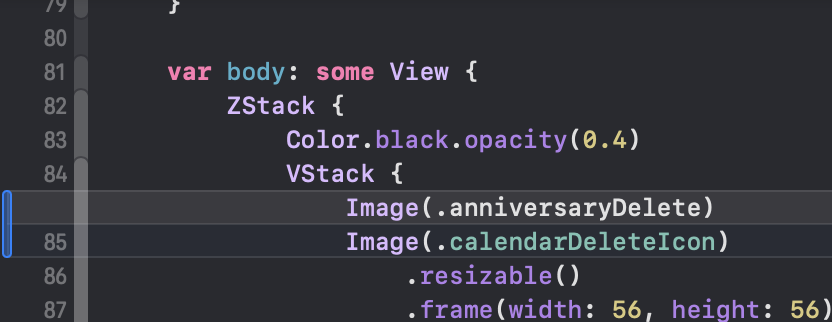 코드가 진짜 잘못됐었다. 이미지 사용할 때 오타날까봐 String+Extension으로 static 상수를 정의해서 사용하는데 anniversaryDelete라는 상수는 없었다. 이미지 이름도 아마 이전에 사용하던 것에서 바꾸는 걸 까먹은 듯한데, 빌드 캐시에 남은게 있었는지 빌드나 배포할 때는 문제없이 동작했다....